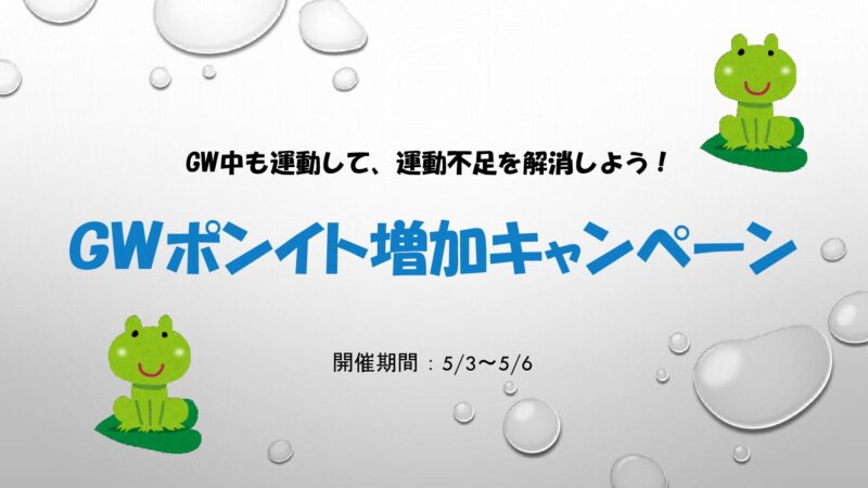 日常生活で不足しがちな運動を補えるよう、 運動イベントの開催や、健康器具の設置を行っております。 実績(2022年度から):社内へのストレッチバンド・バランスボールの設置 実績(2023年度から):スマホアプリを利用し、日々の歩数を計測しています。また、歩数に応じてポイント付与や個人・部署毎でのランキングを表示し、社員の歩数向上を図っています。今後は、アプリを利用したウォーキングイベント等の開催を計画しています。 ◆イベント開催状況 2024年12月30日~1月5日:「ポイント25倍キャンペーン」実施 2025年5月3日~5月6日:「GWポイント10倍キャンペーン」実施